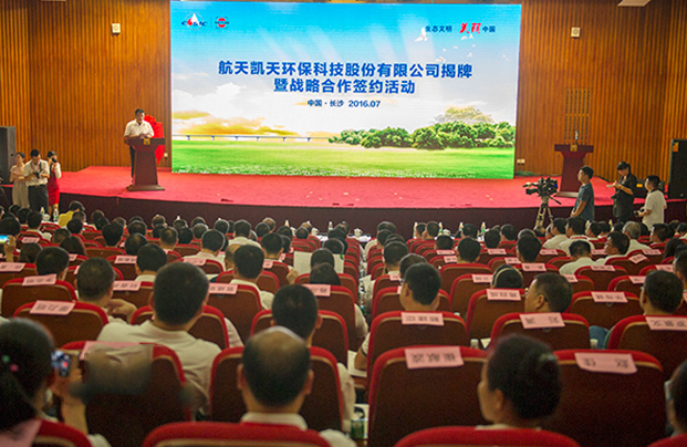 湖南省副省长张剑飞,中国航天科工集团公司党组书记、董事长高红卫共同为“航天凯天环保科技股份有限公司”揭牌。