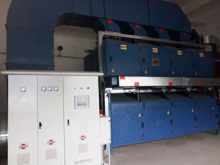 海洋石油工程有限公司是中国目前唯一一家承揽海洋石油、天然气开发工程建设项目的总承包公司,海洋石油工程(青岛)有限公司是主要的陆地建造基地,主要生产浮式储油卸油装置、钢质导管架平台等海上油气田设施的建造。其二号涂装车间厂房(长度为42m,宽度为36m,高度为15m),喷漆废气治理采用了我司自动吸附脱附处理装置,两台65000m3/h设备同时使用,处理后的尾气达到环保排放标准,有效保障了车间内作业人员安全、健康作业。