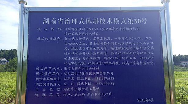技术措施:可降解螯合剂(NTA)+重金属高富集植物籽粒苋+有机配方肥+产品资源化利用+无害化处理的技术模式