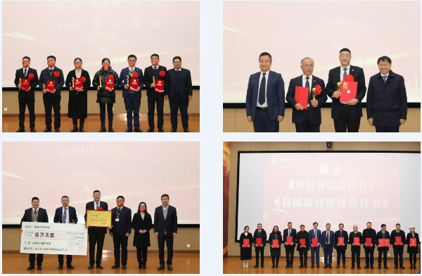 大会表彰了2021年先进团队和先进个人,通报了2021年各事业部经营业绩完成情况,对2022年各事业部经营业绩考核责任书和党风廉政建设责任书进行了说明,向各经营单元颁发经营业绩考核责任书、党风廉政建设责任书。