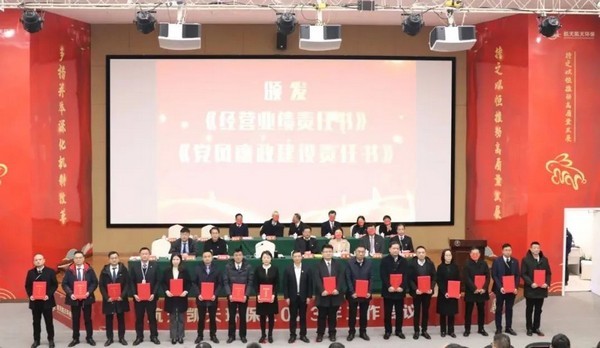 大会表彰了2022年先进团队和先进个人,通报了2022年各事业部经营业绩完成情况,对2023年各事业部经营业绩考核责任书和党风廉政建设责任书进行了说明,向各经营单元颁发经营业绩考核责任书、党风廉政建设责任书。