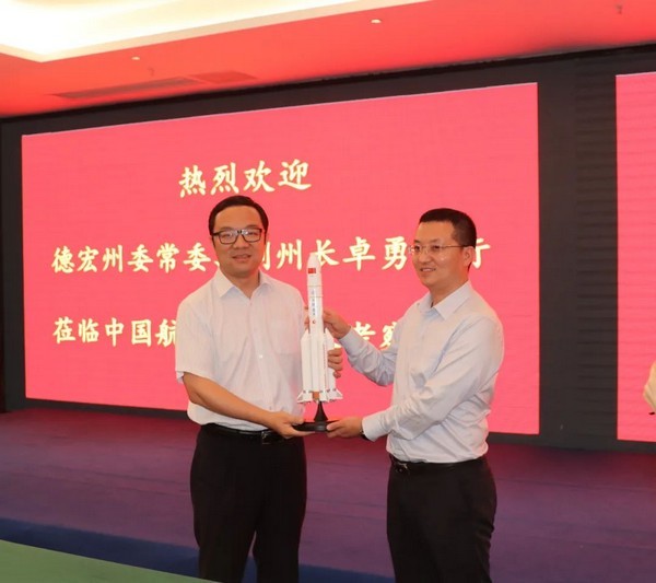 随后一行人在新闻发布中心进行交流座谈,周波平详细介绍了航天凯天环保业务范围及技术优势,航天凯天环保作为绿色生态综合服务商,在绿色生态智慧城市、绿色生态美丽乡村和绿色生态工业园区为核心业务,并努力实现“双碳”目标,并围绕德宏州政府的项目进行了详细探讨。