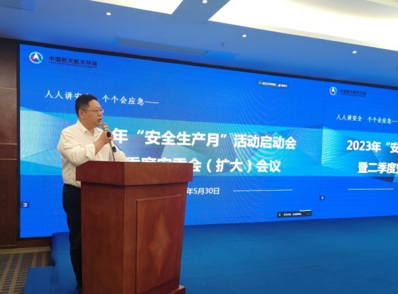 5月30日,航天凯天环保组织召开2023年度“安全生产月”启动会暨二季度安委会(扩大)会议,总裁姜晖、在司领导班子、职能部门、经营单元负责人等领导干部参加会议,会议由副总裁李勇主持。