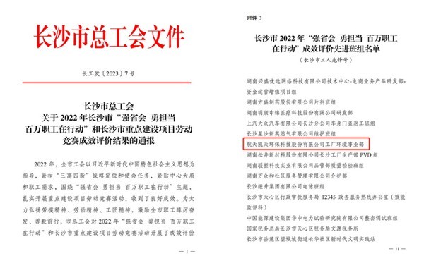 近日,长沙市发布2022 年“强省会 勇担当 百万职工在行动”和长沙市重点建设项目劳动竞赛成效评价结果的通报,航天凯天环保科技股份有限公司工厂环境事业部荣获长沙市“工人先锋号”。