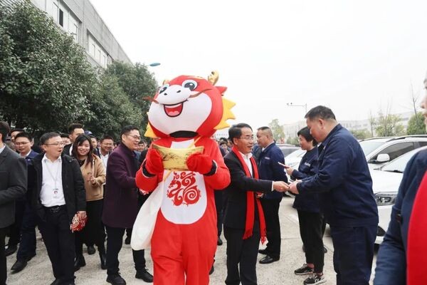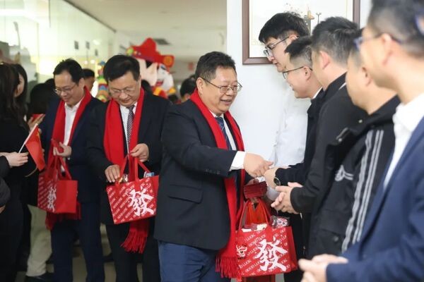 仪式结束后,公司领导来到各职能部门、经营单元工作现场给员工们拜年,为开启新的征程加油鼓劲。