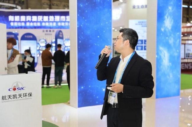 此次展会,航天凯天环保创新运用丰富智能数字化展示等形式,展现了各业务板块最新环保技术与解决方案,展现“成为世界一流的生态环境技术服务商”的整体实力。在展会现场,来访者络绎不绝,在各个板块前进行详细询问,吸睛不断。姜晖和喻春艳分别接受了行业头部媒体E20环境产业平台、央广传媒、中国环保在线的现场采访,详细介绍了公司今年参展的龙头技术和主要业务板块,并阐述了公司未来的战略发展方向和业务布局。姜晖表示,绿色低碳是新质生产力的基本要求,中国环保产业现已迈入高质量发展新时代,生态环保和绿色技术创新已经成为推动经济、社会高质量发展的重要途径和强大动力。航天凯天环保在全面推进美丽中国建设的道路上持续贡献自己的力量。