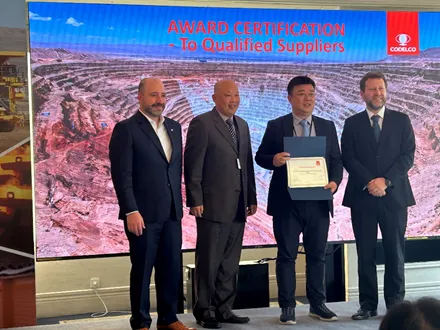 在本次供应商大会上,CODELCO副总裁MAURICIO ACUNA授予航天凯天环保科技股份有限公司粉尘控制与机电领域的合格供应商资格,并表达了对未来合作的期待。他希望进一步与我司商议包括粉尘治理在内的矿区环境综合治理方案,力争落实并确认相关具体试点项目,全面推进双方的合作。蓝斌男代表我司对CODELCO公司的认可和合作诚意表示感谢。