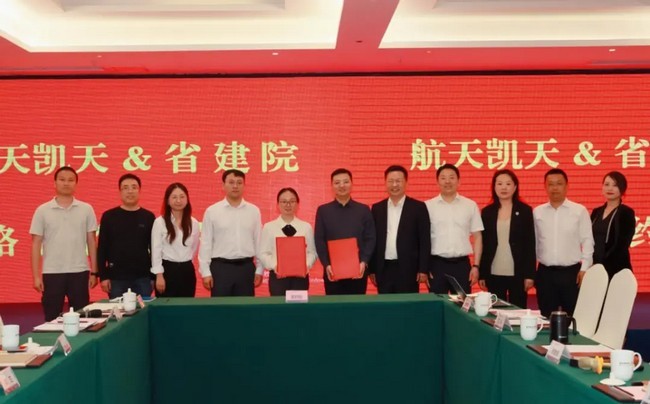 四月芳菲漫星城,湘江之畔奏响绿色发展新乐章。在春意盎然的4月14日,航天凯天环保科技股份有限公司与湖南省建筑设计院集团有限公司市政工程设计院执手相携,以战略合作协议为笺,共绘生态文明建设的新图景。湖南省建筑设计院市政工程设计院院长陈圆、市政工程设计院副院长周正、给排水二所副所长唐三连、给排水二所副所长曾彪、给排水一所主任工程师江娟出席本次活动;湖南航天管理局副局长,航天凯天环保党委书记,董事长郑自儒、航天凯天环保党委委员、副总裁周波平、副总裁邱翔云、市政水务事业部总经理江辉等参加签约仪式,大家在春晖中共执生态之笔,谱写合作华章。