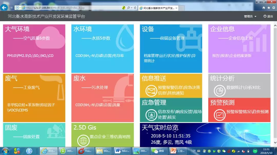 其中,智慧环保监管平台涵盖大气、水环境、污染源及排放、环境预警预测等,是衡水工业园区第三方治理的闪光点,也是国内最为领先的工业园区智慧环保监管平台之一。