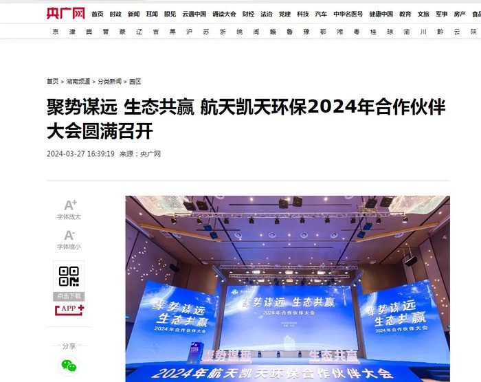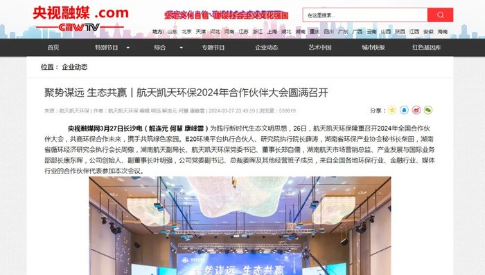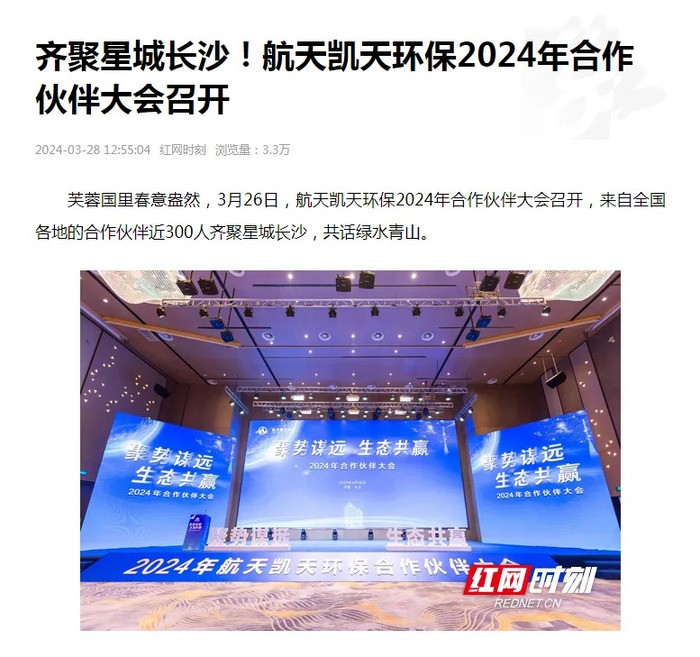 3月26日,航天凯天环保在星城长沙隆重召开了2024年合作伙伴大会。此次大会吸引了来自全国各地的环保领域合作伙伴,共同探讨绿色发展与生态文明建设的新策略,受到了众多媒体的广泛关注和报道。