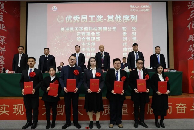 会议表彰了2024年度表现突出的集体和个人。奖项包括“优秀党员突击队” “优秀员工奖” “优秀干部奖” “优秀团队奖” “金牌经营团队奖”以及“突出贡献奖”。获奖代表胡永锋在发言中表示,荣誉属于全体航天凯天人,未来将继续发扬拼搏精神,为公司高质量发展贡献力量。