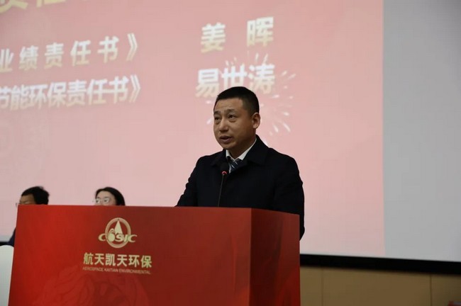 公司总裁姜晖在会上作了题为:《聚焦主业 深耕厚植 推进三化 砥砺前行 为实现航天凯天高质量发展而奋斗》的工作报告。
